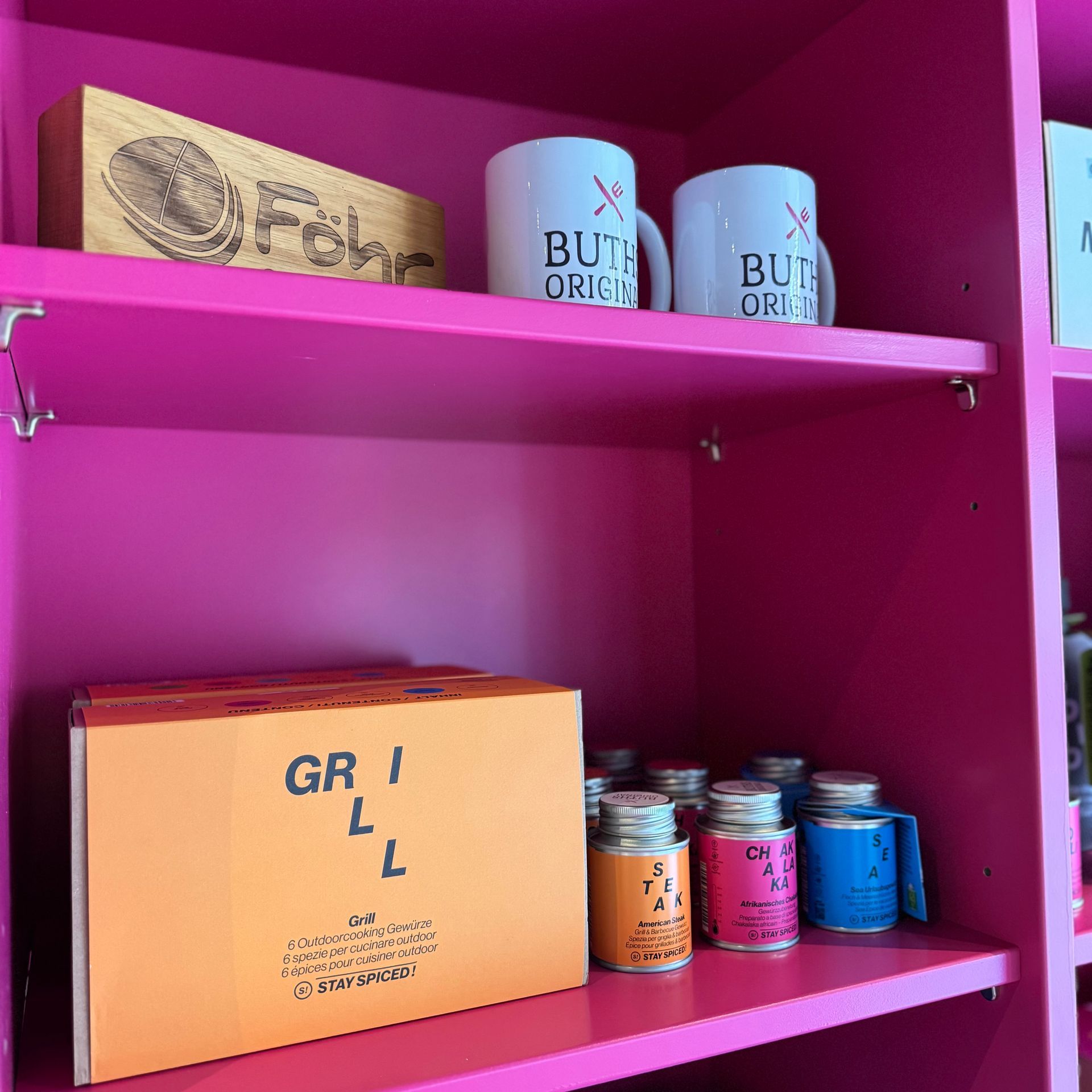 Magda (Magdalena) Buth hat vor 75 Jahren zusammen mit Opa Karl-Heinz Buth den Grundstein für die heutige Firma gesetzt. In dieser Zeit hat sich viel verändert. Was aber gleich geblieben ist, ist die Liebe zum Kochen, zu guten Produkten und 'nem leckeren Tropfen. Und genau das gibt´s nun hier: hausgemachte Konserven (Weckgläser), moderne Gewürze, erlesene Tropfen (Sünjhaid!). Ideal zum genießen und verschenken.